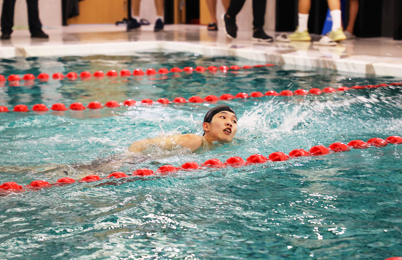 下午两点,游泳馆内人声鼎沸,运动健儿们早已换上泳装,蓄势待发。只听得一声令响,游泳健将们迅速反应,矫健的身姿,如利箭出弦,你追我赶间,浪花翻涌。一场激烈的游泳比赛,瞬间火热上演。