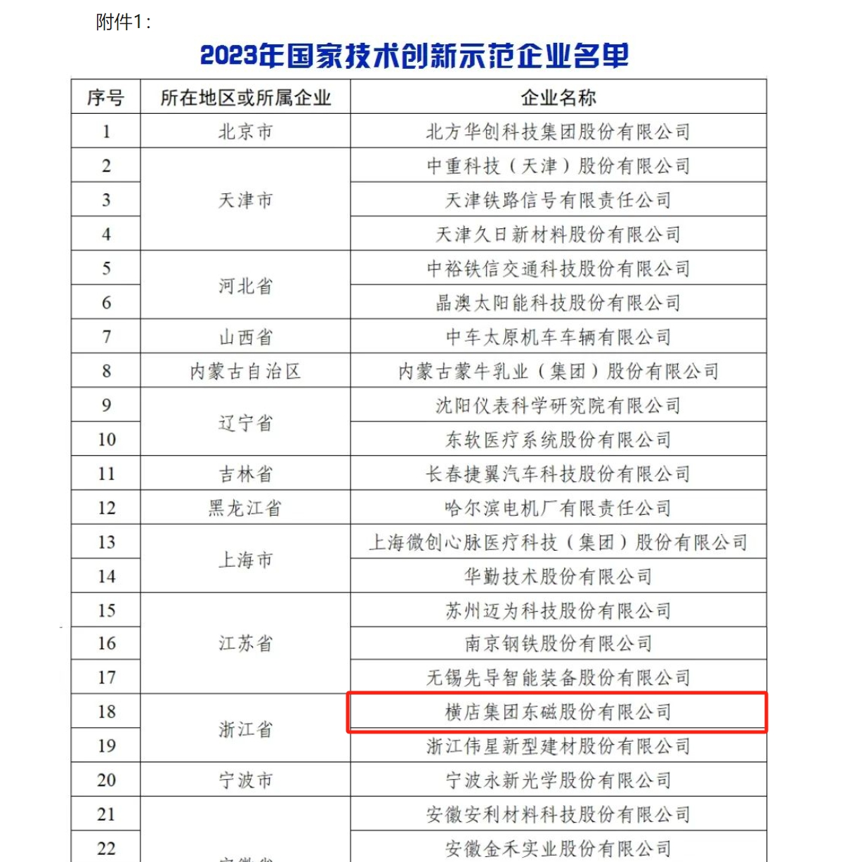 1月17日,工业和信息化部公布2023年国家技术创新示范企业名单,68家企业榜上有名,横店东磁位列其中。
